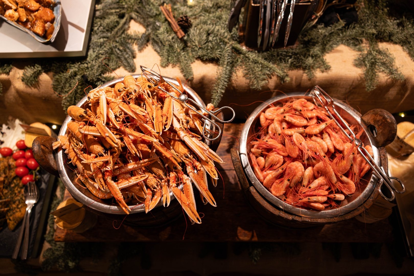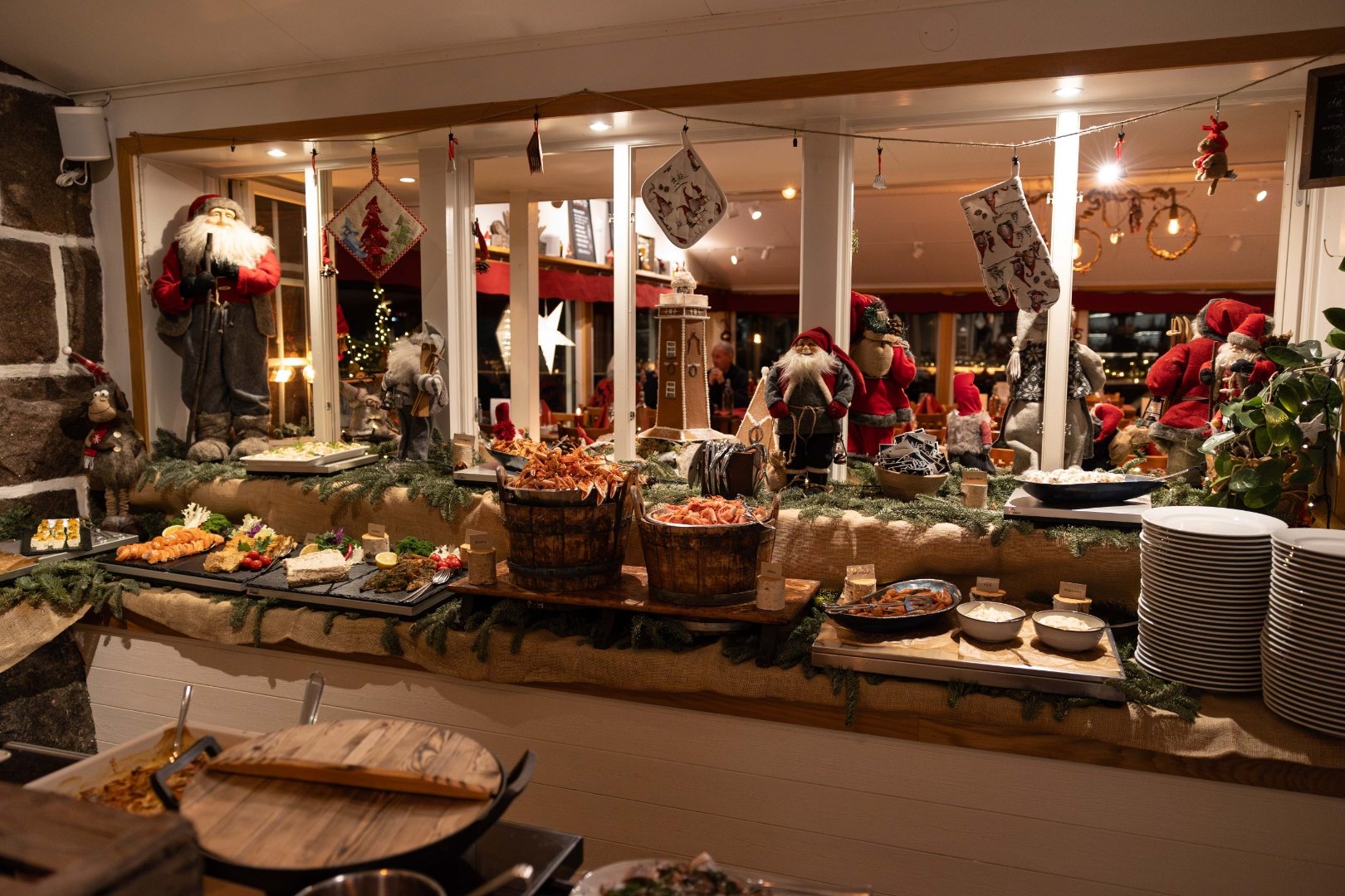 Ta en cykeltur ner till Klåva hamn, där kockarna på Tullhuset visar stor kreativitet och ständigt bjuder på något nytt. Här finns varken skinka eller köttbullar – istället dignar buffén av havets läckerheter, kompletterad med vegetariska alternativ och ett generöst dessertbord. Hummersoppa och äggost är stående favoriter som varje år får sällskap av nya, spännande rätter – till glädje för både återkommande och nya gäster.